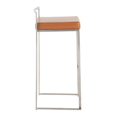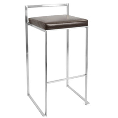 Fuji - Contemporary Stackable Barstool (Set of 2) - Brown - Faux Leather