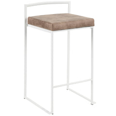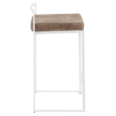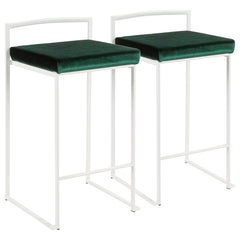 Fuji - Contemporary Stackable Counter Stool (Set of 2) - White - Velvet