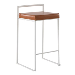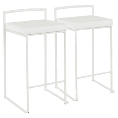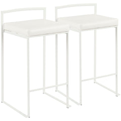 Fuji - Contemporary Stackable Counter Stool (Set of 2) - White - Faux Leather
