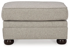 Inspired by the past but rooted firmly in the present, this ottoman complements your transitional seating area. Its versatile upholstery is delightfully detailed for a subtle herringbone effect. Designer touches like bun legs add traditional character. With this ottoman's reliable style and comfort, all you need to do is kick back and relax.