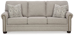 Inspired by the past but rooted firmly in the present, this sofa complements your transitional seating area. Its versatile upholstery is delightfully detailed for a subtle herringbone effect. Designer touches like decorative nailhead trim and bun legs add traditional character. With this sofa's reliable style and comfort, all you need to do is sit back and relax.