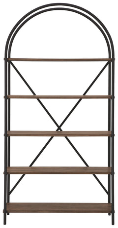 Put a personal touch into your space with the Galtbury on-trend bookcase, perfect for showing off framed photos, books and favorite objects. Defined by its distinctive mix of materials, this piece pairs an open metal frame in a bronze-tone finish with 5 fixed distressed wooden shelves for a look that’s right at home in an industrial, modern farmhouse or rustic setting.