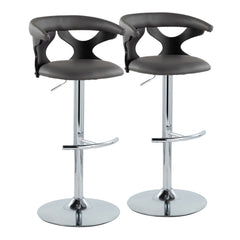 Gardenia - Contemporary Adjustable Barstool With Swivel With Rounded T Footrest (Set of 2) - Black / Chrome / Gray