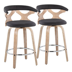 Gardenia - Contemporary Fixed Height Counter Stool With Swivel With Round Footrest (Set of 2) - White Washed / Charcoal