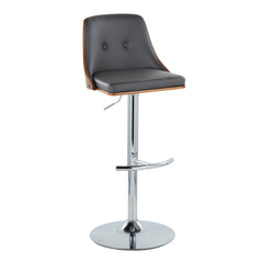 Gianna - Mid-Century Modern Adjustable Barstool With Swivel With Rounded T Footrest (Set of 2) - Chrome / Walnut / Gray