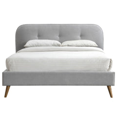 Unexpected paired with natural wood accents creates a relaxing sleep environment for you. The fully upholstered bed features a button-tufted headboard for a comfortable spot to lean on. Fabric upholstery fills the bed with a stunning texture. Wooden legs give it an elegant support. Full of fascinating details, the Graves Bed can work well in rooms of all styles.