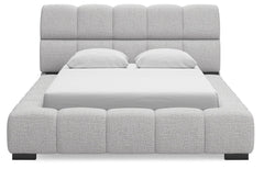 A divine merger of casual and contemporary design, this upholstered bed is the upgrade you've been dreaming of. Plush, deep pillowed tufting creates an impressive silhouette that's just as comfortable as it is stylish. And the textured light Next-Gen Nuvella performance fabric is soft and easy to clean. Now there's a bed with staying power.