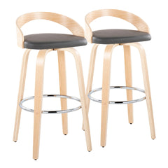 Grotto - Contemporary Fixed Height Barstool With Swivel With Round Footrest (Set of 2) - Natural / Gray