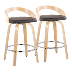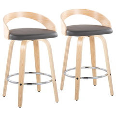Grotto - Contemporary Fixed Height Counter Stool With Swivel With Round Footrest (Set of 2) - Natural / Gray