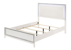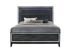 Classic design with touches of modern aspects makes this Haiden Collection ideal for any bedroom. The bed offers a padded headboard with LED light. It also features a glamorous shimmering accent trim that adds richness to design. The finish makes it easy to fit into already existing decor.