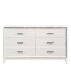 Classic design with touches of modern aspects makes this Haiden Dresser ideal for any bedroom. The piece offers a rectangular tabletop and six storage drawers for displaying or organizing. It also features a glamorous shimmering silver accent trim that adds richness to design. The drawer handles with the same shimmering silver tie them all together to create a cohesive look. The finish makes it easy to fit into already existing decor.