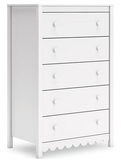 Thanks to its playful scalloped design, this chest of drawers is the perfect fit for cottage or coastal farmhouse interiors. The matte white finish serves as the perfect backdrop to showcase your personal taste and creativity. And its spacious drawers let you say goodbye to clutter and hello to well-organized whimsy.