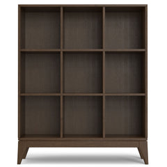 - Features nine (9) cube-style, open storage compartments and slightly tapered legs.