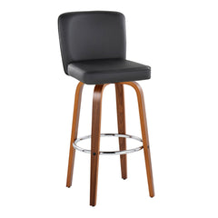 Henry - Contemporary Fixed Height Barstool With Swivel With Round Footrest (Set of 2) - Walnut / Black