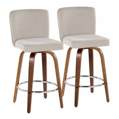 Henry - Contemporary Fixed Height Counter Stool With Swivel With Round Footrest (Set of 2) - Walnut / Beige