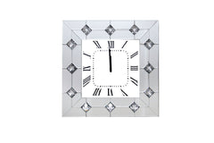 The Hessa mirrored wall clock will catch the attention of every guest. A square mirrored frame with shiny crystals, the clock face has a clean, modern look featuring roman numerals. This masterpiece will not only be functional but also the most stunning decoration of any room.