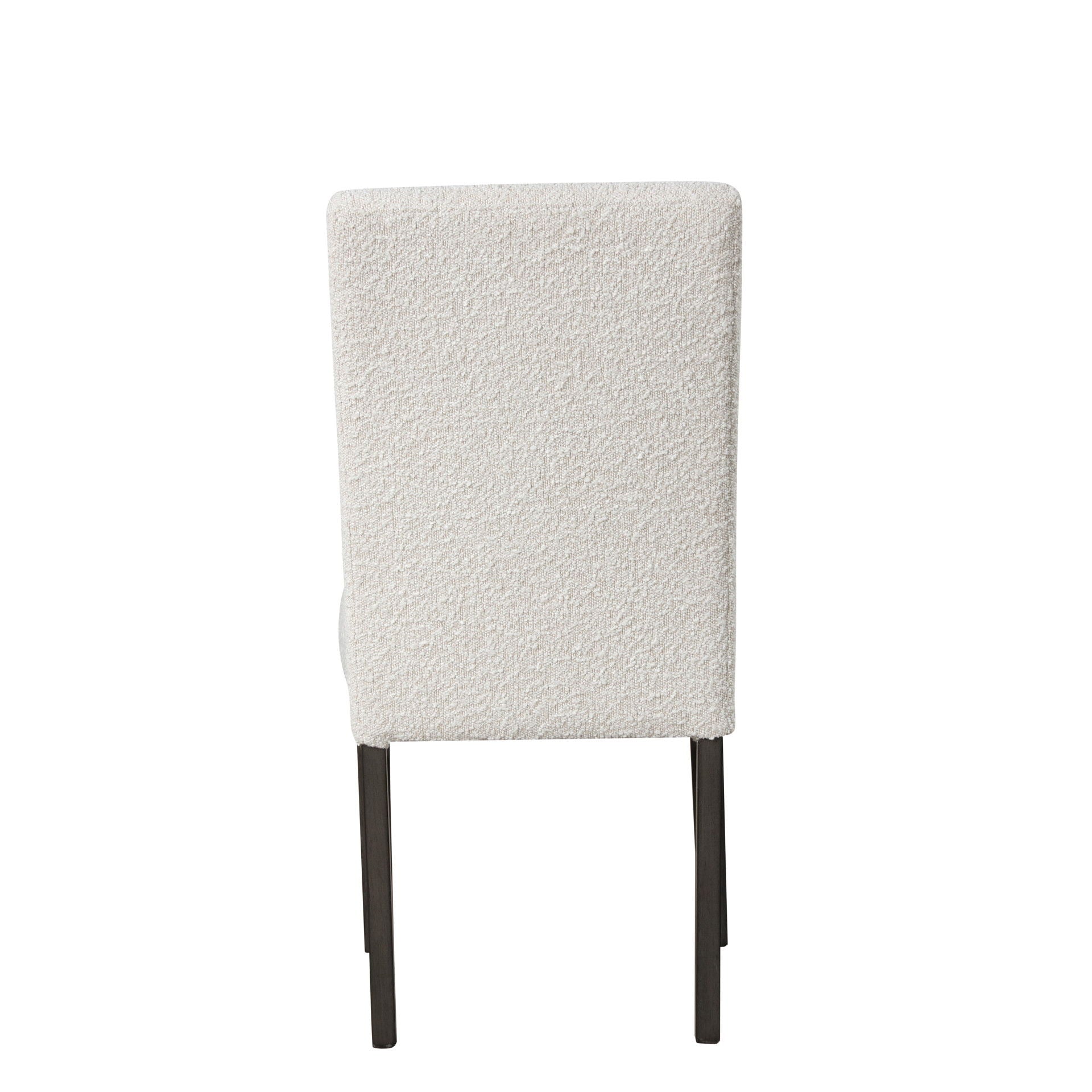The High Line Upholstered Dining Chairs combine durability, comfort, and style to enhance any living space. Each set includes two dining chairs, expertly crafted from solid Acacia and Rubberwood, along with high-quality manufactured woods and Birch veneers, ensuring durability and stability. The luxurious bouclé fabric offers exceptional durability, making these chairs ideal for frequent use. The unique looped texture provides a plush, comfortable seating experience, adding both elegance and longevity to your dining area. Perfect for dining rooms, home offices, or as accent chairs in living spaces, these chairs add both functionality and aesthetic appeal. The High Line Upholstered Dining Chairs seamlessly blend into various interior designs, making them a versatile and stylish addition to any home.