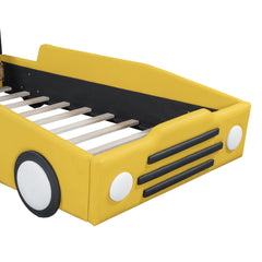 Twin Size Race Car Shaped Platform Bed With Wheels - Yellow