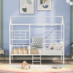 House Bed Frame Twin Size With Slatted Support No Box Spring Needed - White