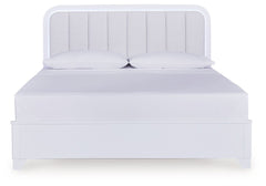 This upholstered panel bed is a showstopper, bringing a touch of modern glamour to your sanctuary. A sleek finish, paired with the cushioned headboards fabric with metallic silver accent threads, creates a sophisticated feel. Built-in LED lighting adds a soft glow, making it even easier to get ready in the morning or wind down at night. Its a simply stunning way to achieve the bedroom of your dreams.