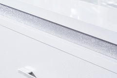 This dresser with mirror is a showstopper, bringing a touch of modern glamour to your sanctuary. A sleek white finish and inset glitter accents create a luxurious feel, while six spacious drawers provide ample storage for your wardrobe. The mirror’s built-in LED lighting adds a soft glow, making it even easier to get ready in the morning or wind down at night. It’s a simply stunning way to achieve the bedroom of your dreams.