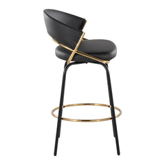 Jie - Fixed Height Contemporary Counter Stool With Swivel With Round Footrest (Set of 2) - Gold / Black / Gold