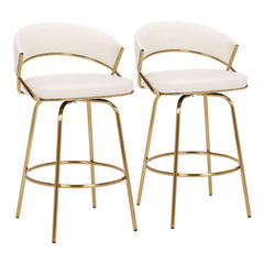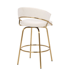 Jie - Fixed Height Contemporary Counter Stool With Swivel With Round Footrest (Set of 2) - Gold / White