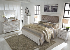 Kanwyn - 8 Pc. - Dresser, Mirror, Chest, King Upholstered Panel Bed, 2 Nightstands - Whitewash