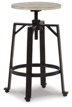 Add a rustic-yet-refined look to your home with this two-tone swivel stool. Its distressed whitewash wood seat with black metal frame conveys an inviting farmhouse style. This charmer easily moves from counter to pub height, giving you and your guests the freedom to sit comfortably while adding a casually cool industrial vibe to your table.