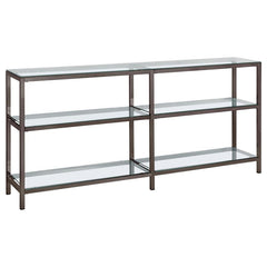 Stylize a modern space with a fashionable and functional piece. This gorgeous bookcase brings together the unmistakable beauty of glass and metal. With a black nickel finished steel frame and clear tempered glass shelving, it adds an elegant simplicity. Display books, decor, and photographs on four shelves and a rectangular surface. This exquisite bookcase adds a gentle, soft, and inspiring look to a contemporary room.