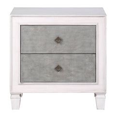 The Katia collection is perfect for creating a modern rustic or farmhouse aesthetic. Merging old and new design features and finishes. The bed features a channel-tufted headboard and footboard in gray linen that pops against the white frame. The case goods fronts are finished in a rustic gray and offer plenty of storage with their ample drawers to fit all your belongings and keep your bedroom organized.