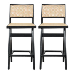 Keira - Bar Stool (Set of 2) - Black / Rattan
