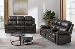 The Kellen Motion Upholstery Set, featuring a dual reclining sofa and console loveseat, blends comfort and convenience with timeless style. Built to last, the sturdy frame is made from premium hardwoods and plywood, ensuring durability for years to come. The plush, resilient foam cushions, combined with advanced pocket coil technology, offer a cozy seating experience that retains its shape over time. Wrapped in rich chocolate-brown upholstery, the fabric, made from a blend of 80% polyester and 20% PU, mimics the luxurious look and feel of leather while providing breathability and sustainability. Thoughtfully designed details like contrast baseball stitching, side channels, and pillowed head and armrests bring a touch of elegance to any room. The smooth-action, heavy-duty reclining mechanism allows you to find your perfect position at the touch of a button, whether you''re kicking back or entertaining guests. Additional lifestyle features, such as a drop-down snack tray with beverage holders in the sofa and extra storage in the console loveseat, keep everything you need close at hand. The Kellen Set offers more than just comfort—it delivers a truly functional and stylish centerpiece for your home.