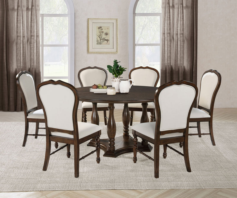 Landon - 7 Piece Round Dining Table Set - Rich Brown