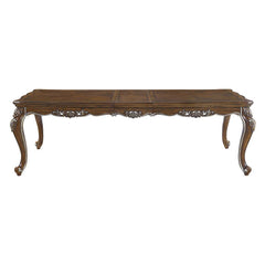 Traditional design with modern accents, the Latisha dining table is the perfect merging of contemporary and classic. The antique oak finish with the hand-brushed silver trim accentuates the elaborate floral moldings that are showcased throughout the legs and apron. Make the most out of this dining table with the included extension leaf for all your dinner guests.