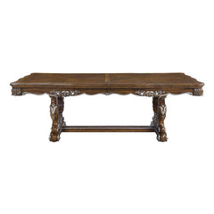 Traditional design with modern accents, the Latisha pedestal dining table is the perfect merging of contemporary and classic. The antique oak finish with the hand-brushed silver trim accentuates the elaborate floral moldings that are showcased throughout the trestle pedestal base and apron. Make the most out of this dining table with the included extension leaf for all your dinner guests.