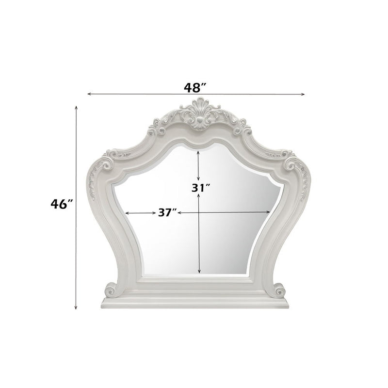 The original inspiration for this Latisha mirror was a scroll carving, which became a recurring theme throughout this romantically opulent mirror. Combined with an antique oak finish with a beautiful hand-brushed patina to highlight the carved details, the mirror strikes a tone of laid-back luxury. The beveled edges make the mirror itself pop.