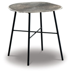 Rich with curated character, this end table puts a contemporary spin on natural beauty. Its irregular grooved top is refined with the glamour of a gleaming chrome-tone finish. A black base completes this cool piece.