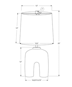 - Dimensions: Overall size is 13.5" L x 13.5" W x 25" H; base measures 10.25" L x 3.75" W x 12" H; shade dimensions are 13.5" L x 13.5" W x 12" H.