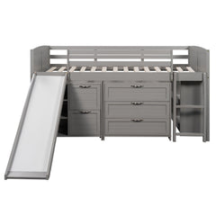 Twin Size Loft Low Bed With Cabinets, Shelves And Slide - Gray