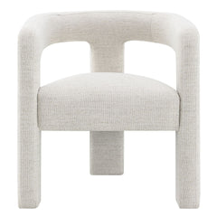 The Lomas collection side chair featuring a soft beige boucle fabric, exudes modern sophistication and comfort. Its unique design and plush texture make it a stylish addition to any living space, creating an inviting atmosphere for relaxation and conversation. Perfect for both contemporary and classic interiors, this chair seamlessly blends elegance with functionality, ensuring it stands out as a centerpiece in your home.