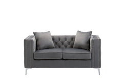 - Glam up your living room with the Lorreto Collection! Crafted from fine wood and quality fabrics, this loveseat features an abundance of button tufting. The double nail-head trim adds a touch of elegance while the low back adds better lumbar support. Entertain your guests and family members in comfort and style.