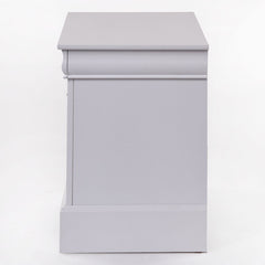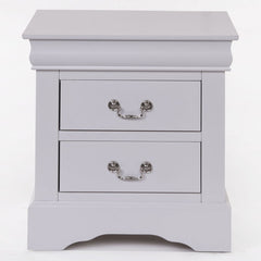 It has two drawers with center metal glide and brushed nickel metal handle. Offers you plentiful storage with spacious drawers