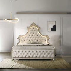 Lucienne - Eastern King Bed With LED - Beige Velvet