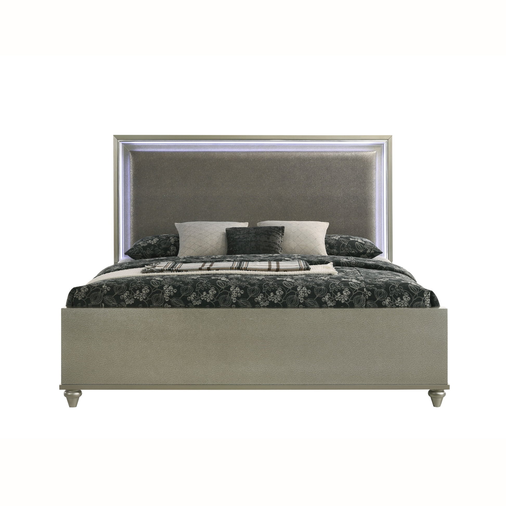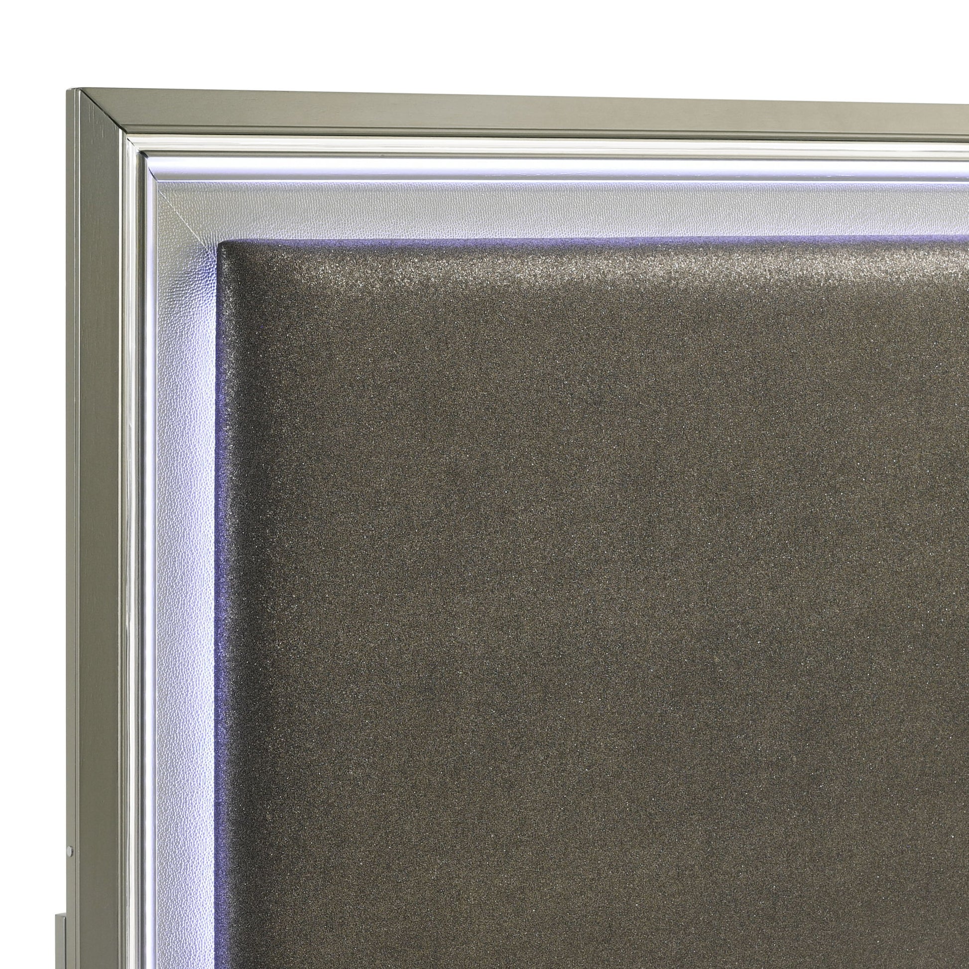 Experience the epitome of sophistication with the Lumina Bed featuring a Lighted Headboard. Crafted from solid Rubberwood and manufactured wood, this bed exudes strength and stability, enveloped in an Eco-Friendly decorative laminate. The High Gloss finish adds a touch of glamour, complemented by the shimmering silver laminate footboard and a glittery upholstered headboard. Illuminate your space with the enchanting backlit headboard, casting a captivating glow and setting a luxurious ambiance. Embrace the perfect blend of durability, style, and allure with the Lumina Bed.