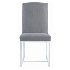 - Fresh grey upholstery highlights the design-forward look of this dining chair