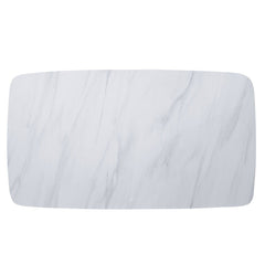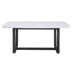 Bold, straight-lined wood work paired with a cool textured marble top creates this stunning modern minimalist work. The dining table is founded atop a wood trestle base shown in weathered gray finish. White rectangular marble top features beautiful and elegant grains, making your dining area feel brighter and more spacious. With clean, graceful lines and simple color scheme, the Madan Dining Table can work well in rooms of all styles.
