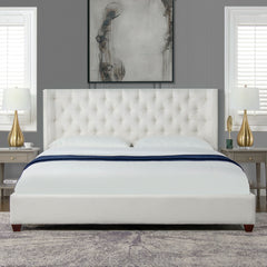 - Elegant Headboard: The shelter, wingback headboard is designed with deep button tufting, adding a touch of elegance and sophistication to the bedroom decor.