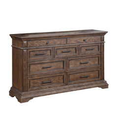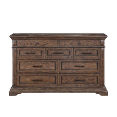 Discover the Mar Vista Dresser, a testament to craftsmanship and design. Constructed with solid Rubberwood and Oak veneers, this dresser promises durability and a robust presence in any room. The rich finish, achieved through meticulous distressing, wire brushing, and charcoal glazing, accentuates the wood’s natural allure, making each piece unique. The dresser’s style is bold, featuring substantial crown moldings, carved bracket feet, and convex pilaster moldings, all complementing the signature herringbone wood inlays of the Mar Vista Collection. The dresser’s beauty is matched by its functionality. The drawers boast English dovetail joinery, full extension glides, and finished interiors, ensuring smooth operation and longevity. For added luxury, the top drawers are velvet-lined to safeguard delicate items, while the bottom drawers are cedar-lined, ideal for preserving fabrics. The nine drawers offer ample storage space, and the dresser includes a removable, felt-lined jewelry tray, perfect for organizing accessories. This Mar Vista Dresser is not just furniture; it’s a statement of elegance and practicality for your home.