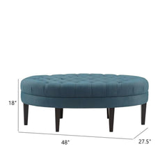 - Elegant Design: Classic oval shape with a modern button tufted top in dusty blue.
